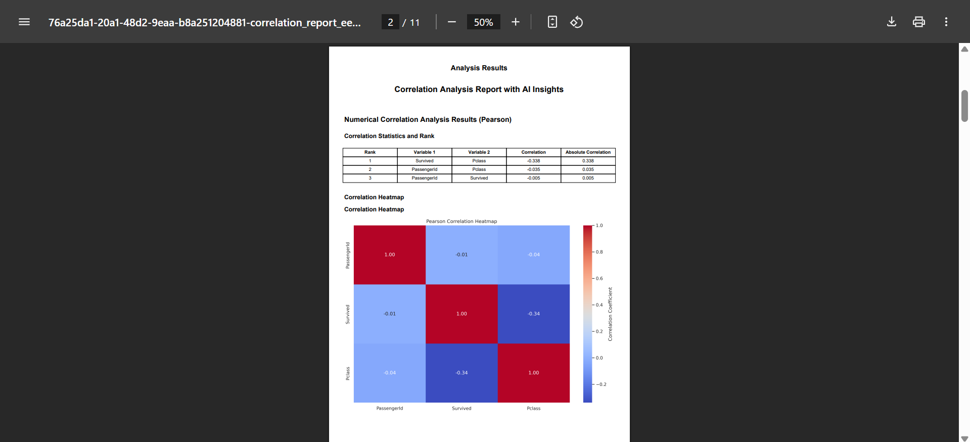 - The analysis results will appear on the left panel, while the right panel allows you to ask follow-up questions about the analysis.