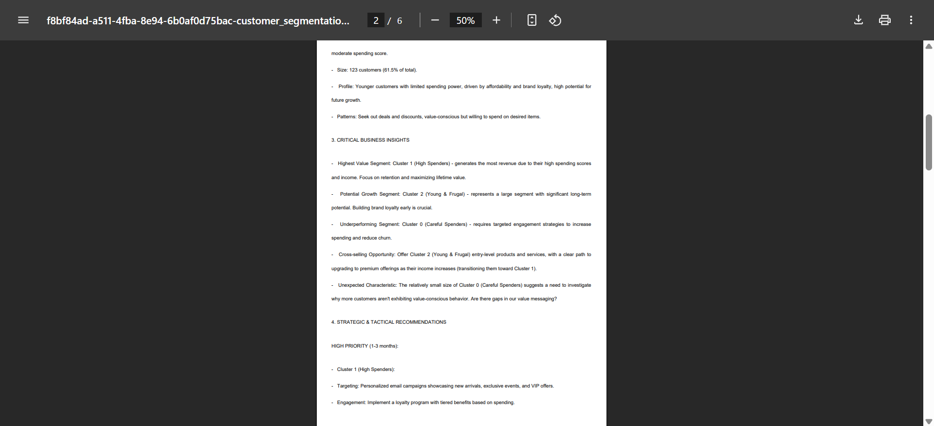 - Your analysis results are now available in PDF format.