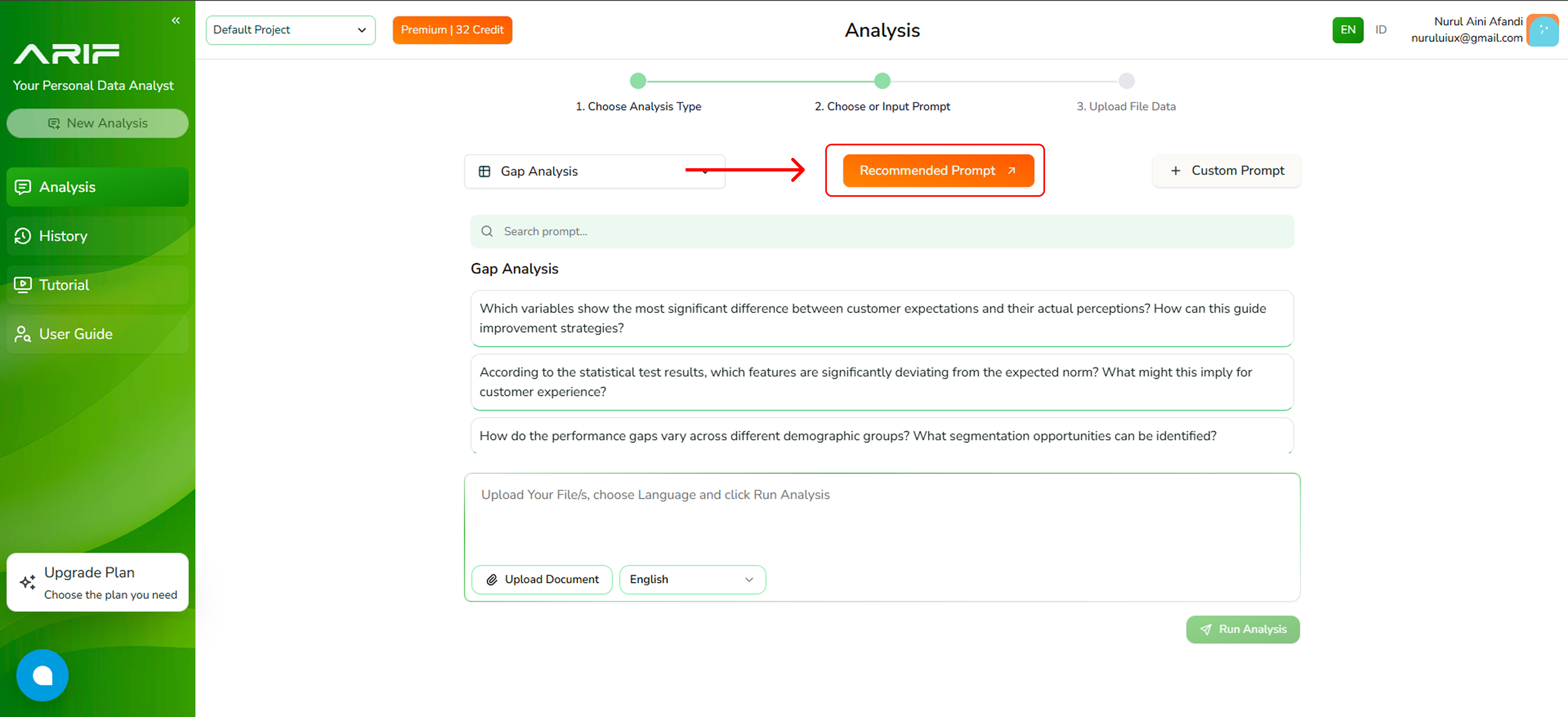 - You need a prompt which basically is a question or an instruction to drive the analysis result. Choose one of the Recommended Prompts from the list for a quick, expert-driven setup.