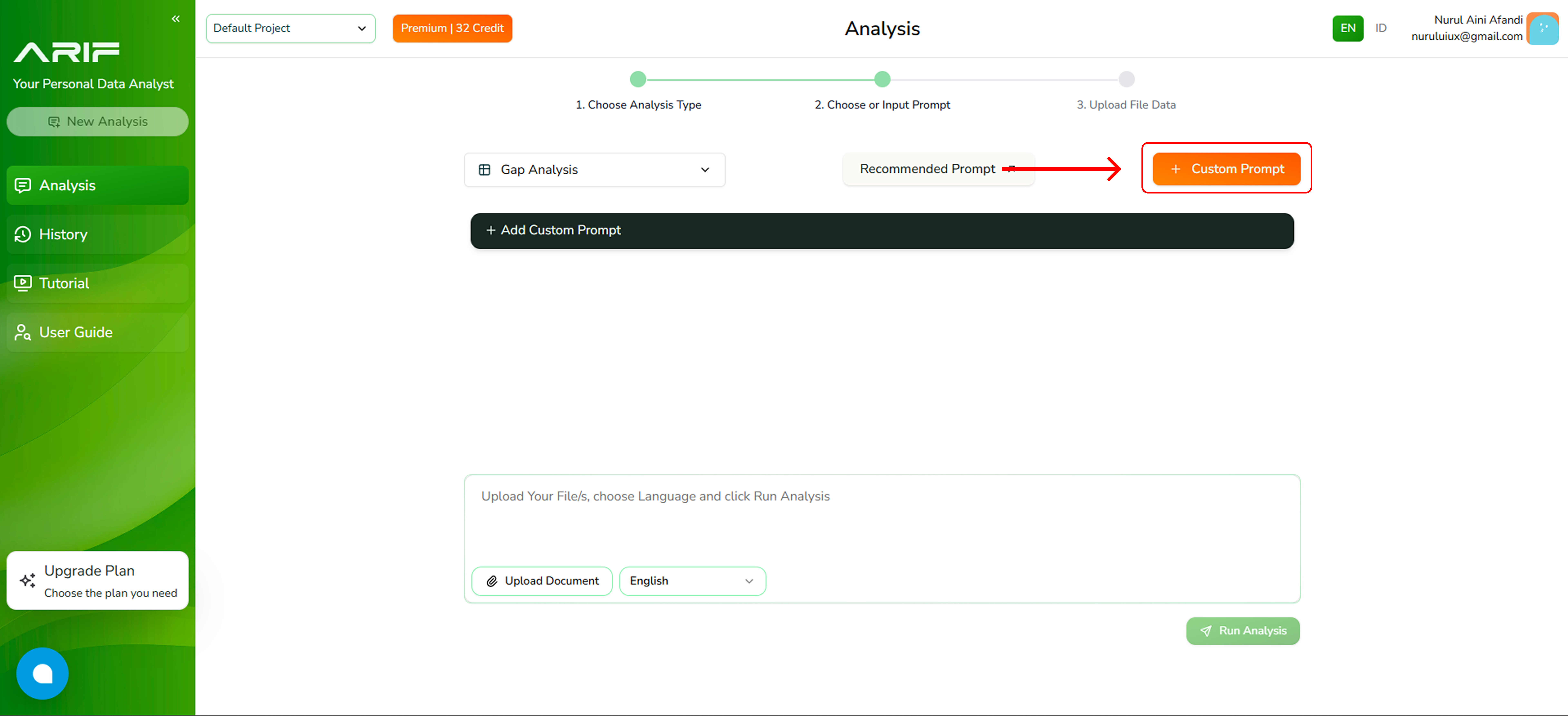 - Or write your own prompt depending on the insights you want to gain from your data by clicking the “Custom Prompt” button.