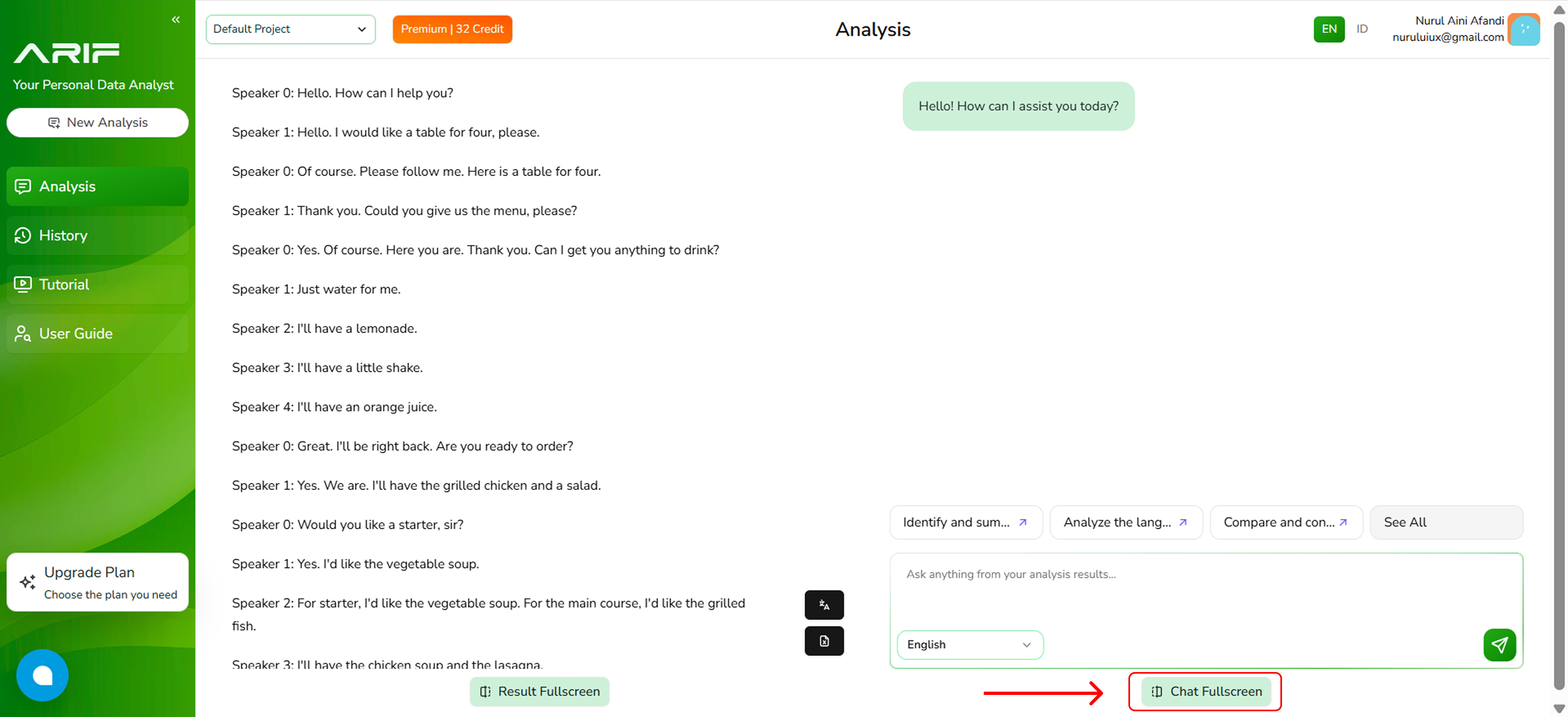 - You can click on “Chat Fullscreen” at the bottom of the panel to expand the view.